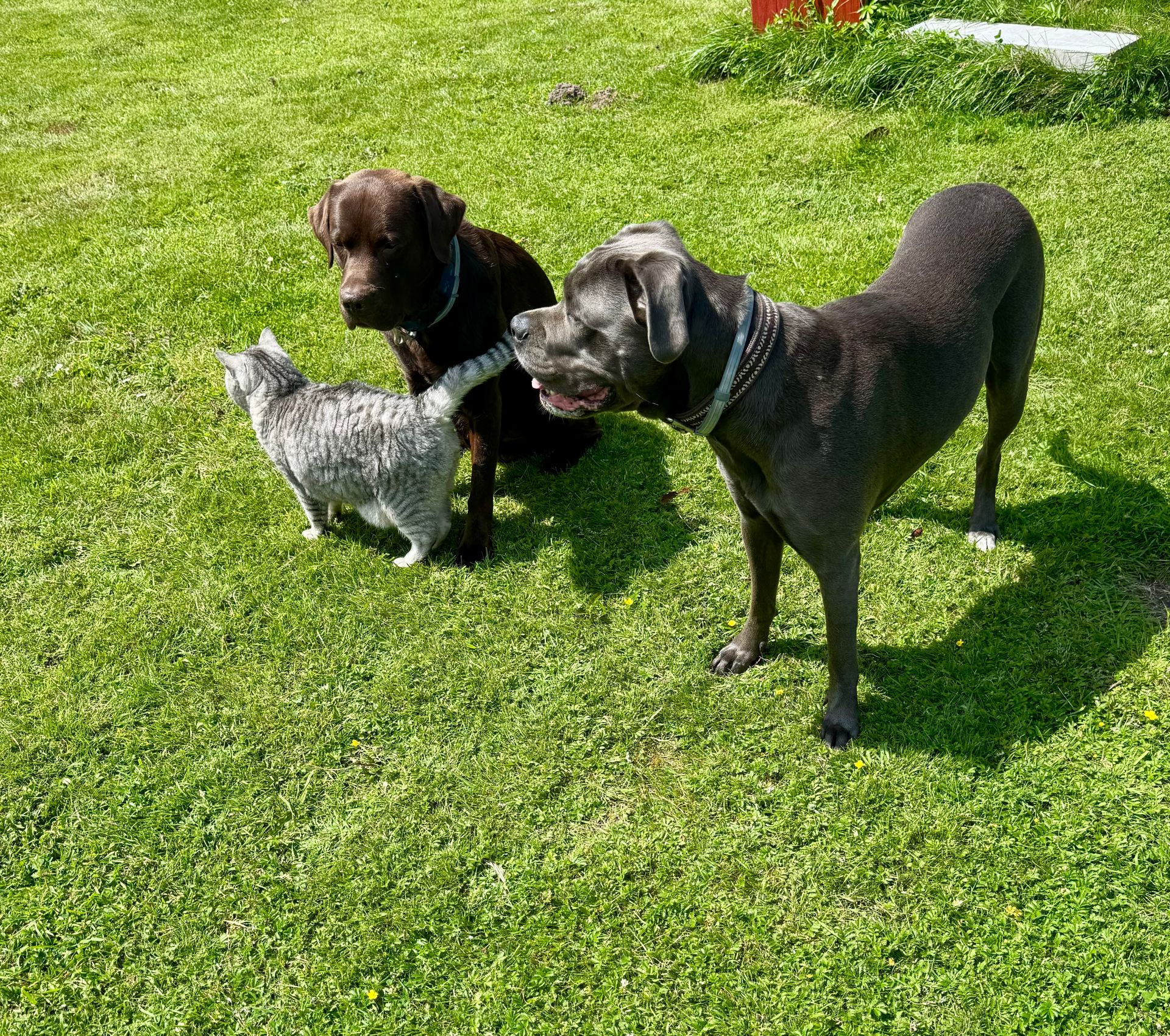 - Olaf, der Kater. Er liebt Schlaf – und patrouilliert als kleiner König gelegentlich durchs Revier, gern in Begleitung der Hunde.